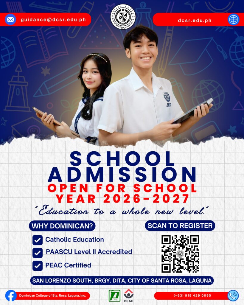 Dominican College of Sta. Rosa, Laguna, Inc. unceasingly provides quality education nurtured with religious experiences. And now with its fully spread wings joins educational institutions to assist in providing the nation’s citizenry a holistic development scheme with religion as its core. It foresees graduates who are Christ-centered, lovers of the Virgin Mary, defenders of truth and responsive citizens.
